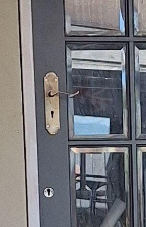 A quality pair of solid brass lock handles with a keyhole for a mortice lock.